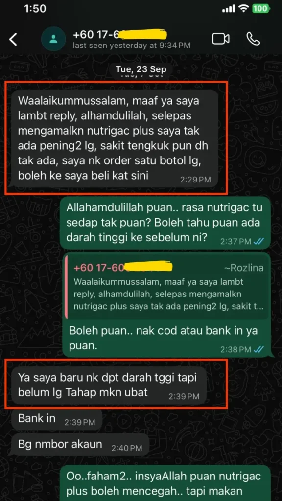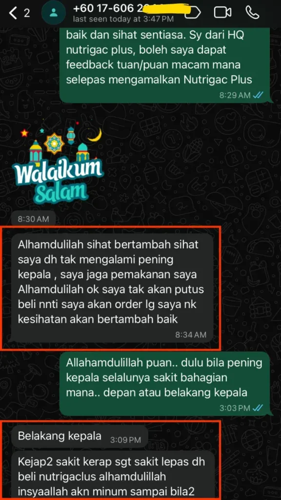 Antara Feedback Pengguna Lain Yang Dah Amalkan Nutrigac Plus+